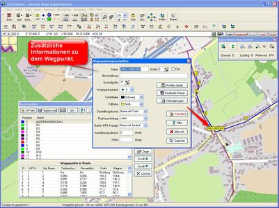 An sinnvollen Stellen kann man dem Wegpunkt zusatzinformationen mitgeben, z.B. eine Navigationsanweisung wie "Links abbiegen".
