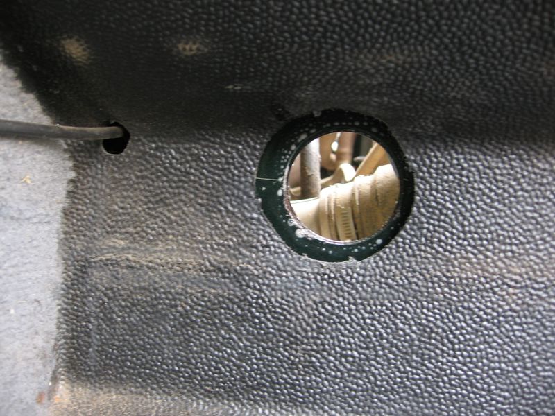 Durchführung in der Spritzwand des Defender für die Klimaanlage.